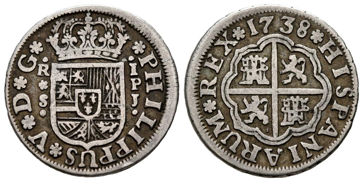 FELIPE V (1700-1746). 1 Real. (Ar. 2,82g/20mm). 1738. Sevilla PJ. (Cal-2019-661). MBC.