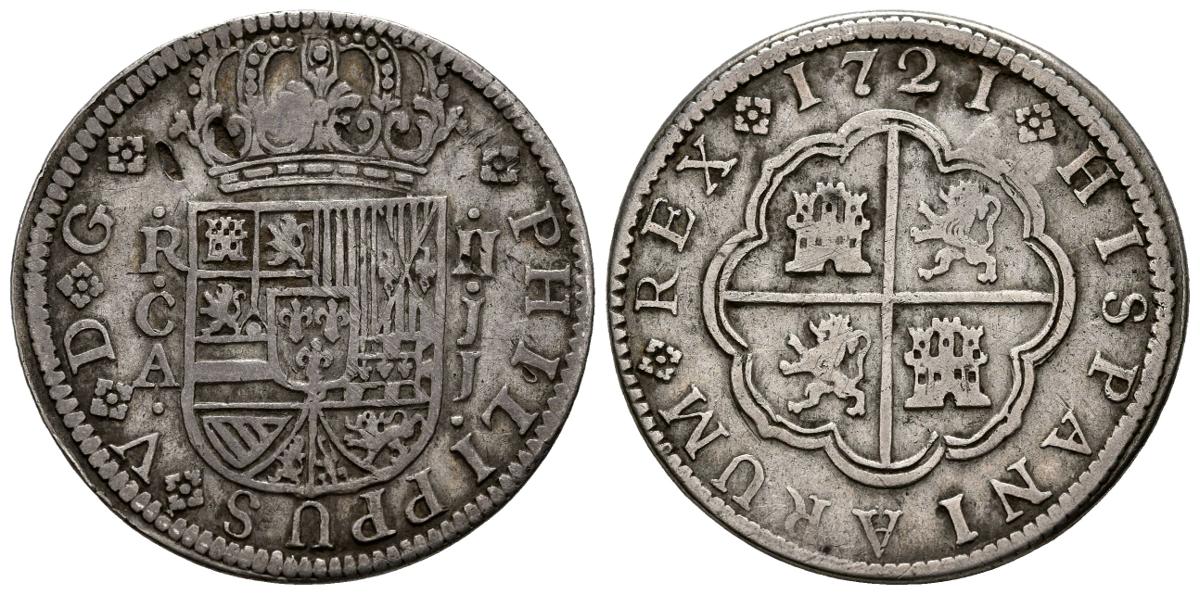 FELIPE V (1700-1746). 2 Reales. (Ar. 4,34g/27mm). 1721. Cuenca JJ. (Cal-2019-671). MBC-.