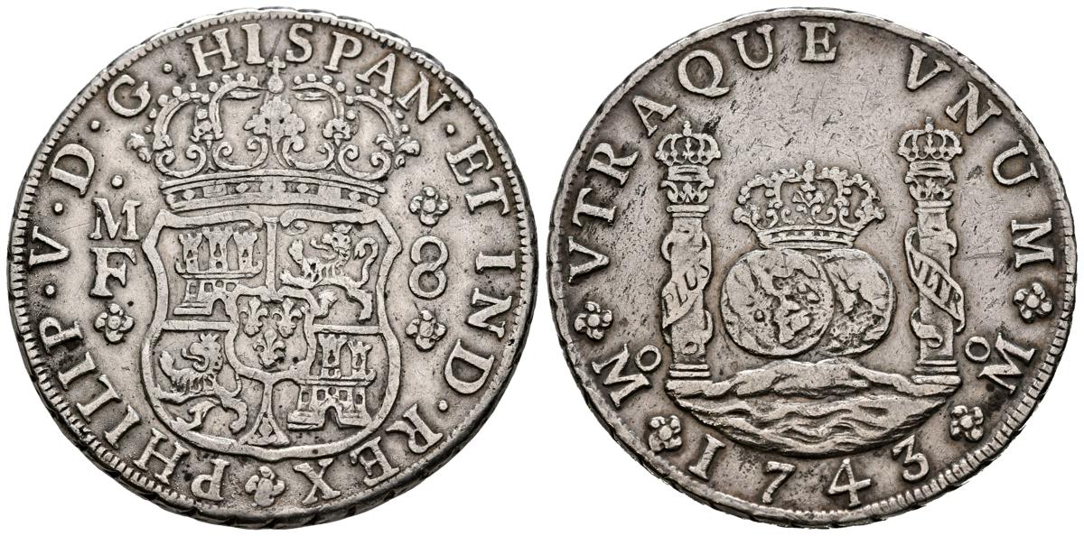 FELIPE V (1700-1746). 8 Reales. (Ar. 26,81g/39mm). 1743. México MF. (Cal-2019-1462). MBC+.