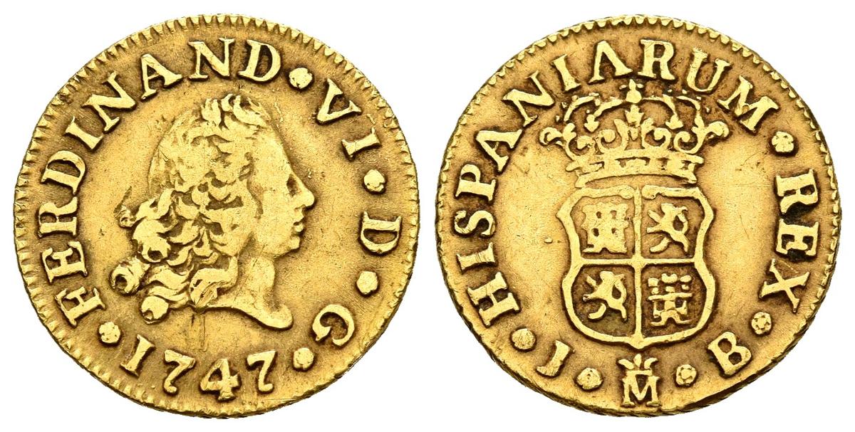 FERNANDO VI (1746-1759). 1/2 Escudo (Au. 1,76g/14mm). 1747. Madrid JB. (Cal-2019-548). MBC-.