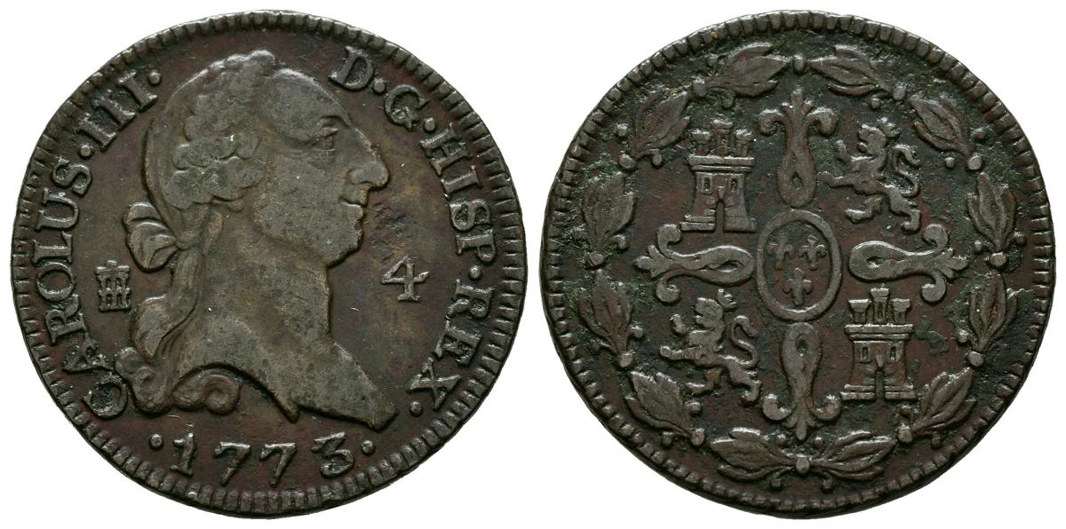 CARLOS III (1759-1788). 4 Maravedís. (Ae. 5,16g/25mm). 1773. Segovia. (Cal-2019-53). MBC.