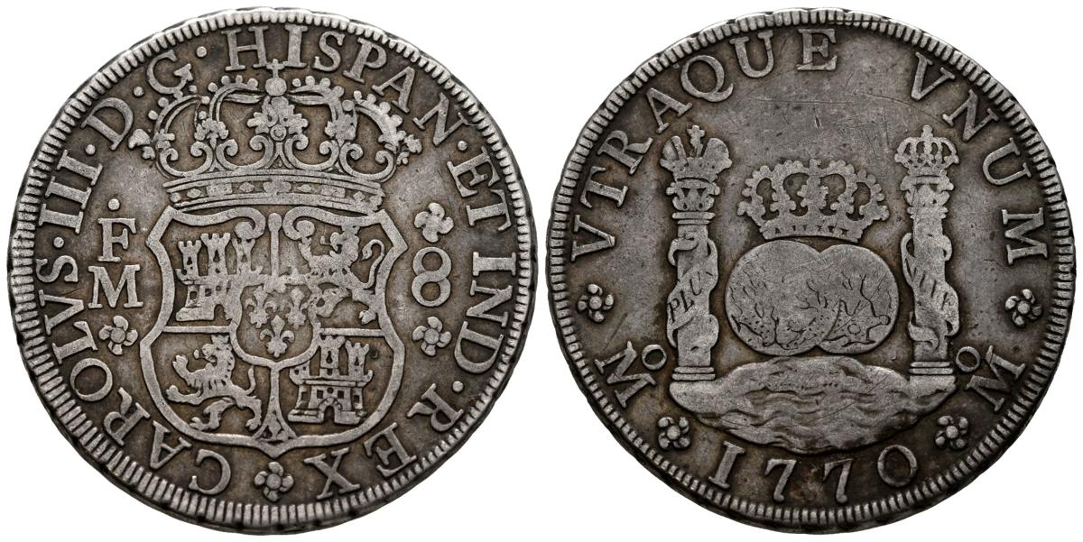 CARLOS III (1759-1788). 8 Reales. (Ar. 26,57g/40mm). 1770. México FM. (Cal-2019-1101). MBC.