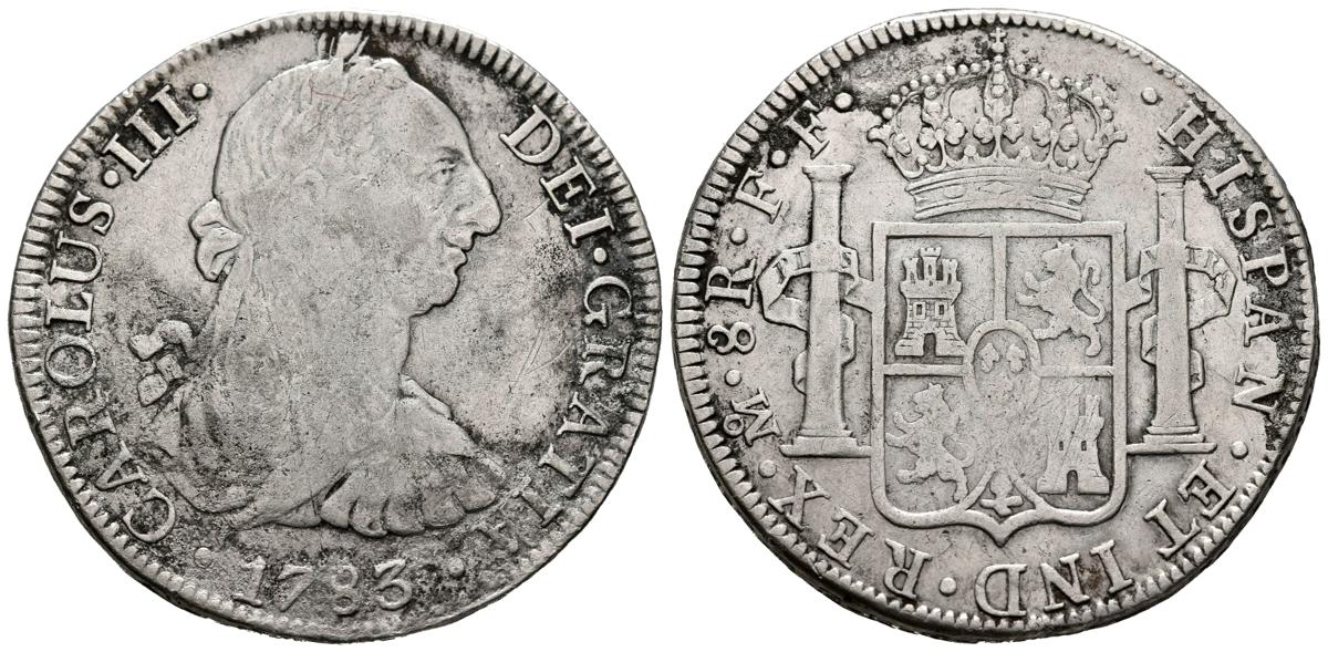 CARLOS IV (1759-1788). 8 Reales. (Ar. 26,57g/38mm). 1783 México FF. (Cal-2019-1124). MBC-. Oxidaciones limpiadas.