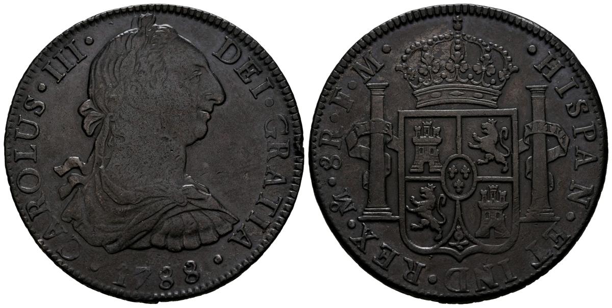 CARLOS III (1759-1788). 8 Reales (Ar. 26,87g/38mm). 1788. México FM. (Cal-2019-1132). MBC/MBC+. Pátina negra.