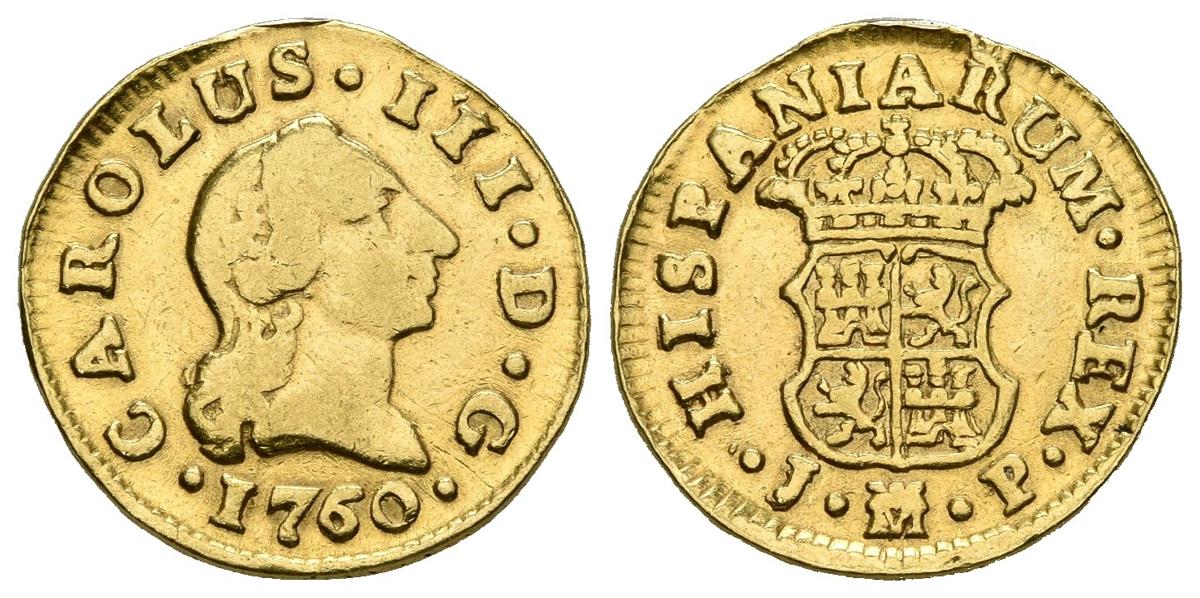 CARLOS III (1759-1788). 1/2 Escudo. (Au. 1,71g/15mm). 1760. Madrid JP. (Cal-2019-1243). MBC-.