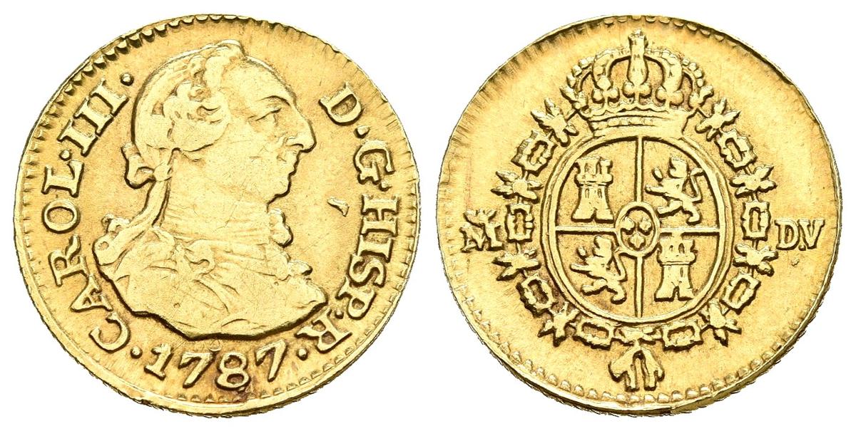 CARLOS III (1759-1788). 1/2 Escudo. (Au. 1,74g/14mm). 1787. Madrid DV. (Cal-2019-1281). MBC.