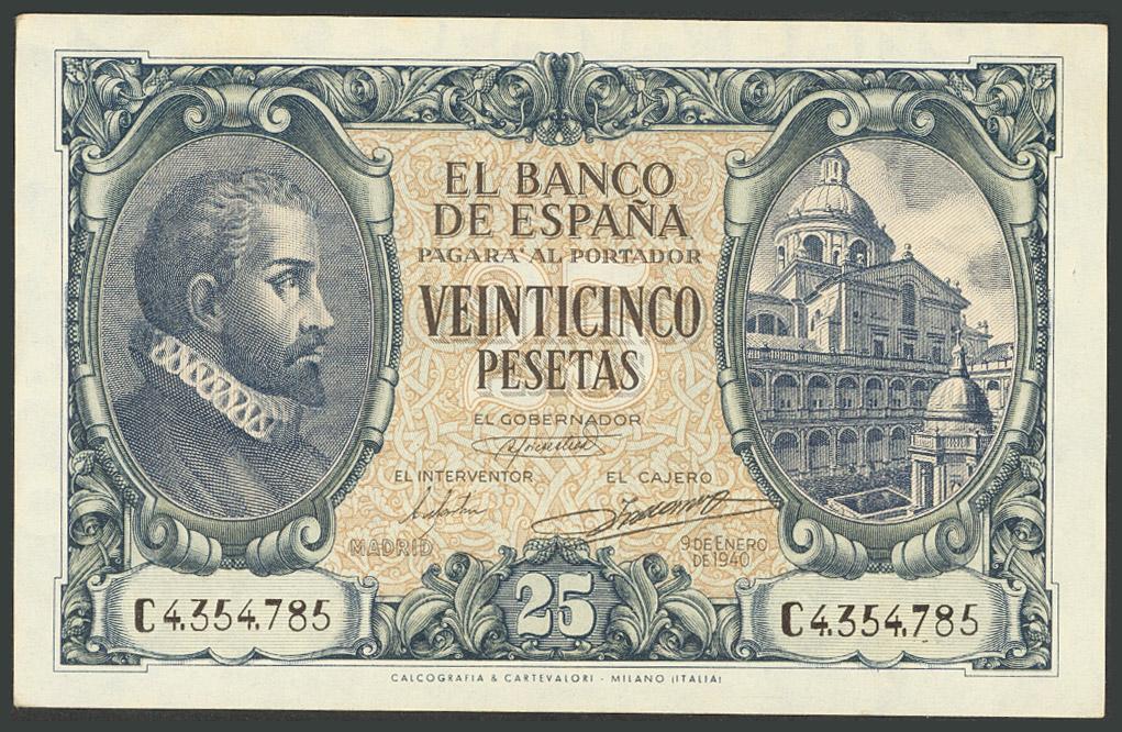 25 Pesetas. 9 de Enero de 1940. Serie C. (Edifil 2017: 436a). SC-.