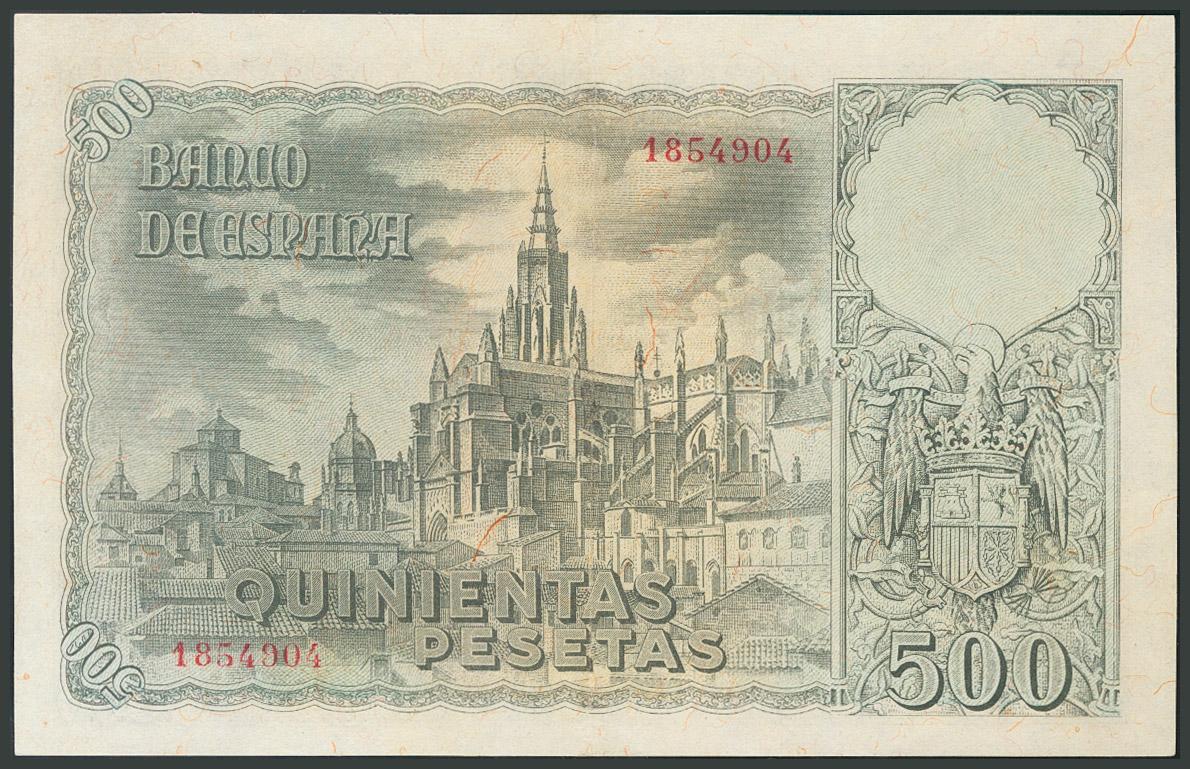 500 Pesetas. 21 de Octubre de 1940. Sin serie. Invisible doblez. (Edifil 2017: 444). Apresto. EBC.