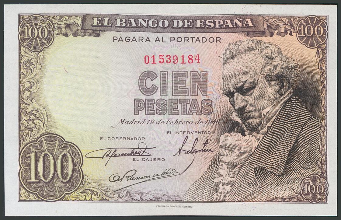 100 Pesetas. 19 de Febrero de 1946. Sin serie. (Edifil 2017: 451). SC.