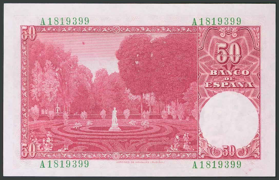 50 Pesetas. 31 de Diciembre de 1951. Serie A. (Edifil 2017: 462a). SC.
