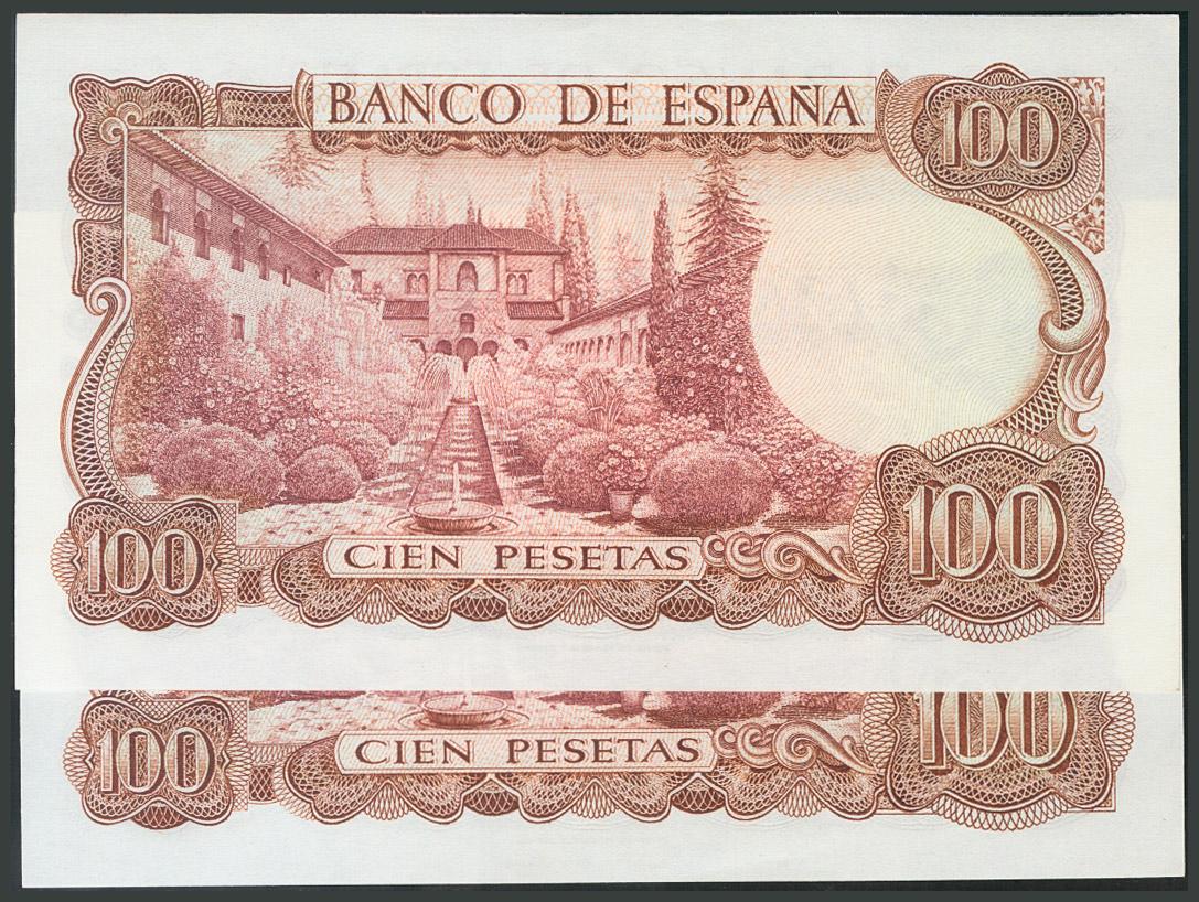 100 Pesetas. 17 de Noviembre de 1970. Pareja correlativa. Numeración especial 9A. (Edifil 2017: 472d). SC.