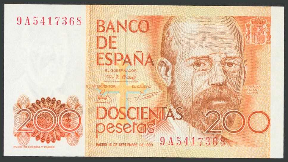200 Pesetas. 16 de Septiembre de 1980. Serie 9A. (Edifil 2017: 480b). SC.