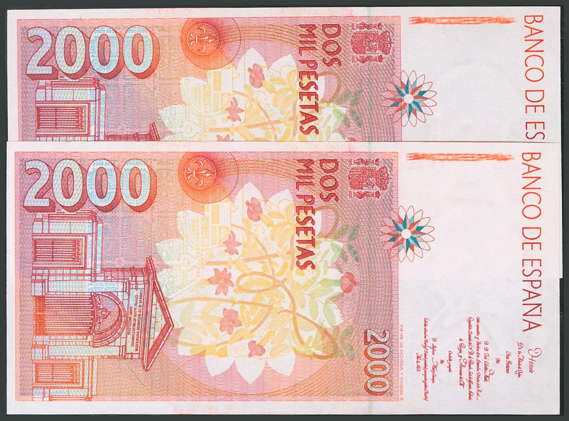 2000 Pesetas. 24 de Abril de 1992. Pareja correlativa. Serie 1B. (Edifil 2017: 482a). Apresto original. SC.