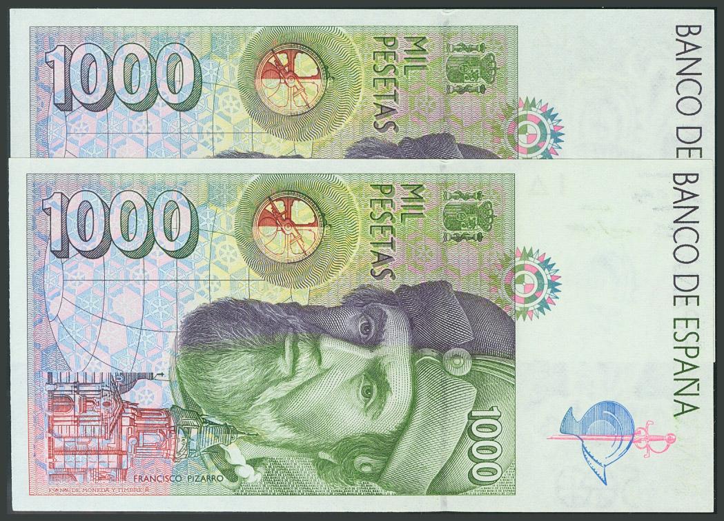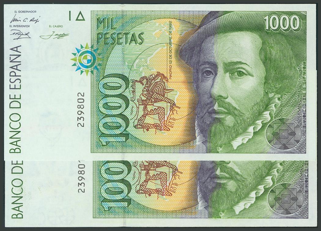 1000 Pesetas. 12 de Diciembre de 1992. Sin serie. Pareja correlativa. (Edifil 2017: 483). SC-.