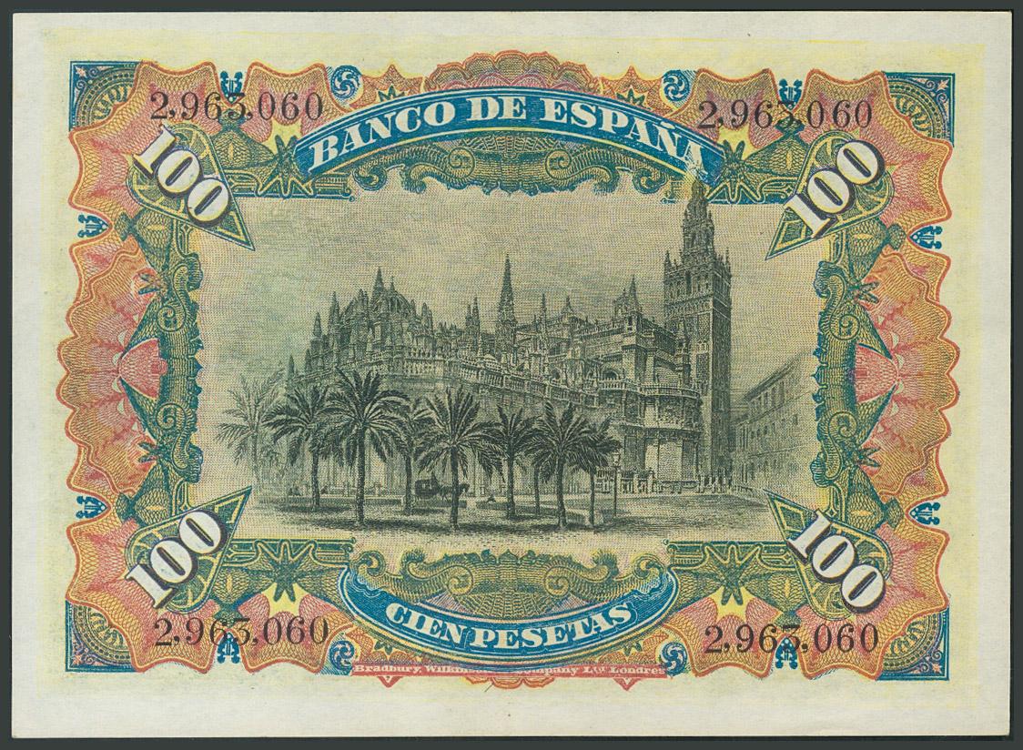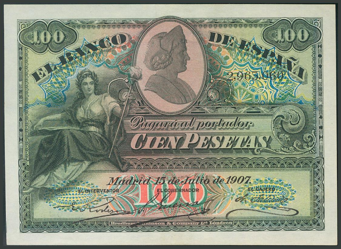 100 Pesetas. 15 de Julio de 1907. Sin serie. (Edifil 2017: 320). Conserva su apresto original. SC-.