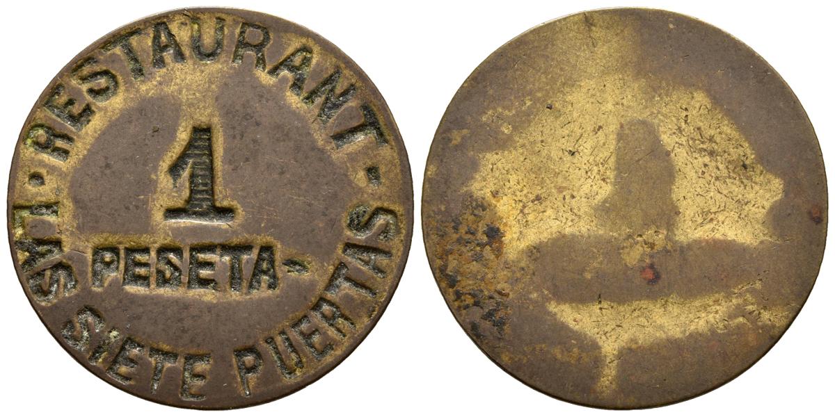 SEVILLA. 1 Peseta. Restaurant-Las siete puertas. La. 5,28g. MBC+.