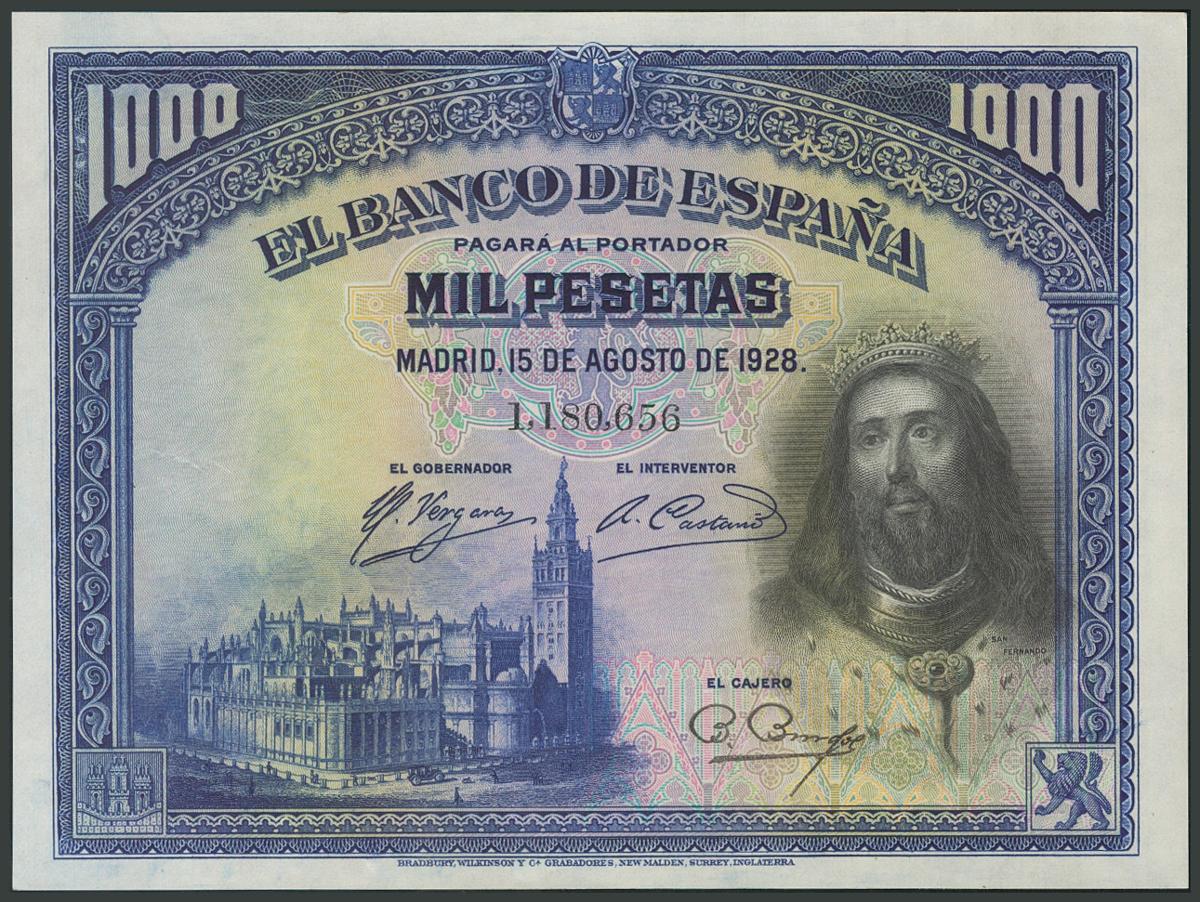 1000 Pesetas. 15 de Agosto de 1928. Sin serie. (Edifil 2017: 357). SC.