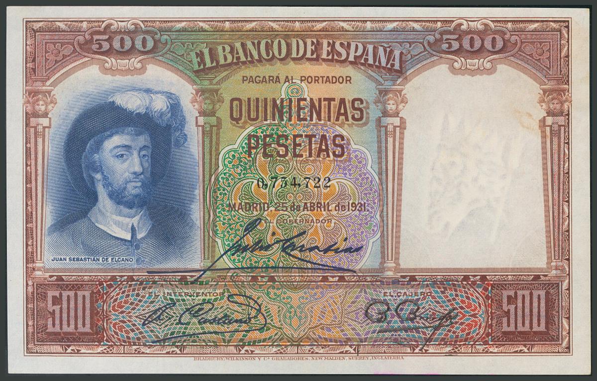500 Pesetas. 25 de Abril de 1931. Sin serie. (Edifil 2017: 361). Conserva su apresto original. EBC+.