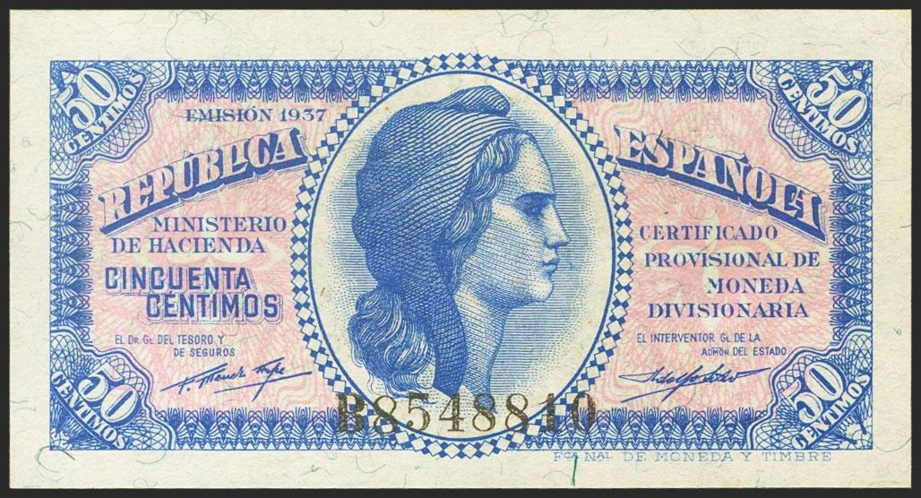 50 Céntimos. 1937. Ministerio de Hacienda. Serie B. (Edifil 2021: 391). Apresto original. SC.