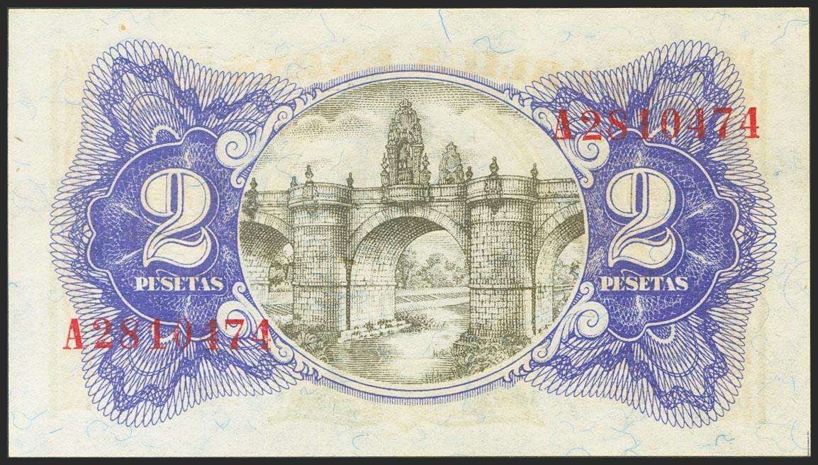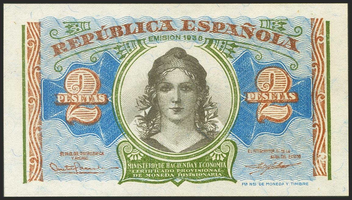 2 Pesetas. 1938. Ministerio de Hacienda. Serie A. (Edifil 2021: 393). Apresto original. SC.