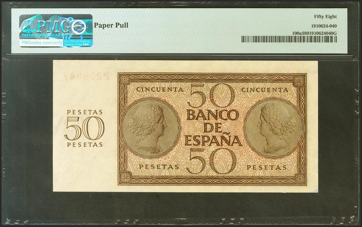 50 Pesetas. 21 de Noviembre de 1936. Serie P. (Edifil 2021: 420a, Pick: 100a). EBC++. Encapsulado PMG58.