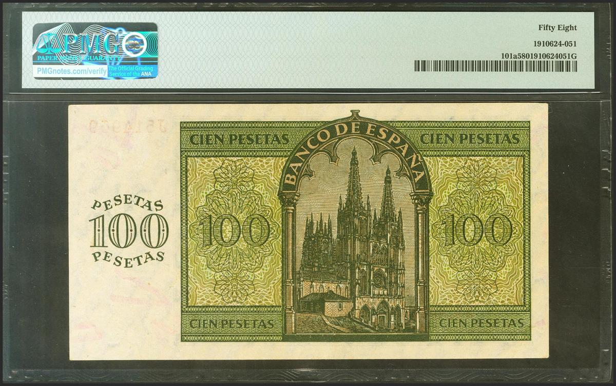 100 Pesetas. 21 de Noviembre de 1936. Serie J. (Edifil 2021: 421a, Pick: 101a). EBC++. Encapsulado PMG58.