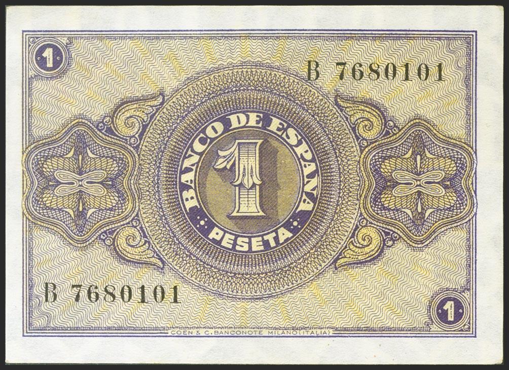 1 Peseta. 12 de Octubre de 1937. Serie B. (Edifil 2021: 425a). Conserva la mayor parte de su apresto original. EBC++.