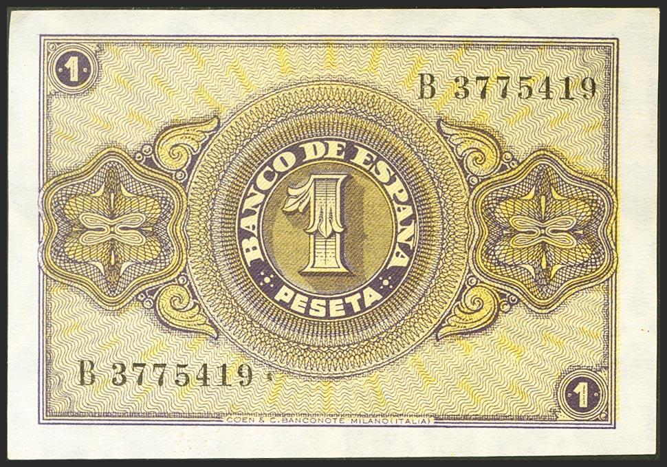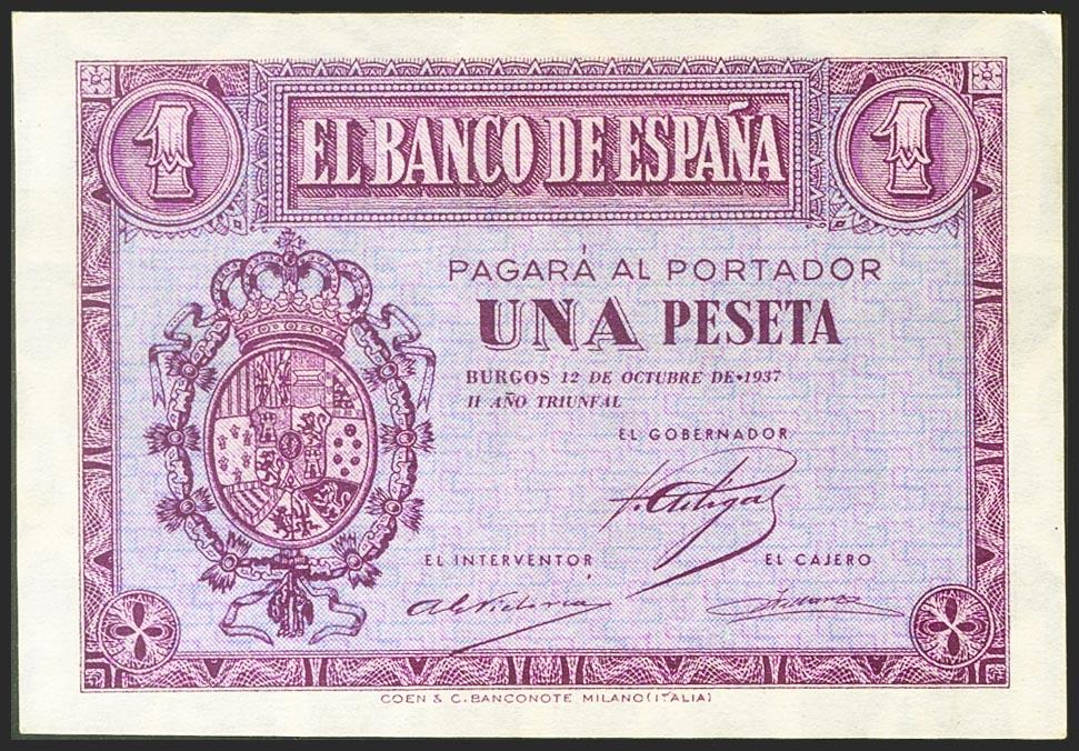 1 Peseta. 12 de Octubre de 1937. Serie B. (Edifil 2021: 425a). Apresto original. EBC+.