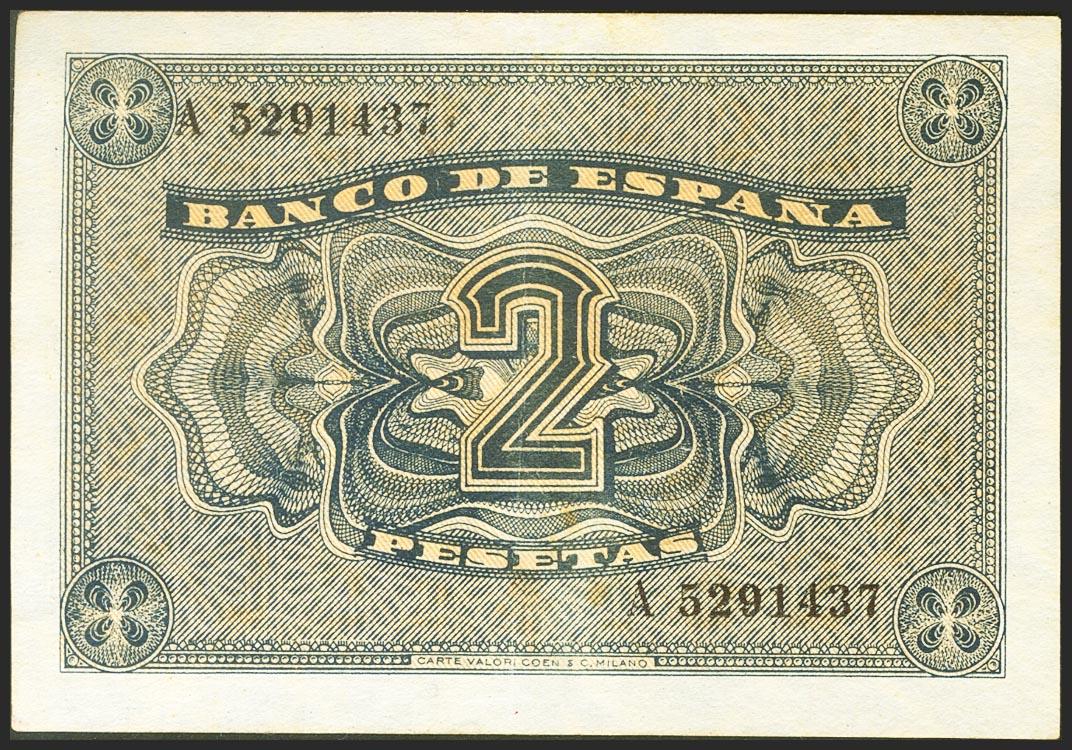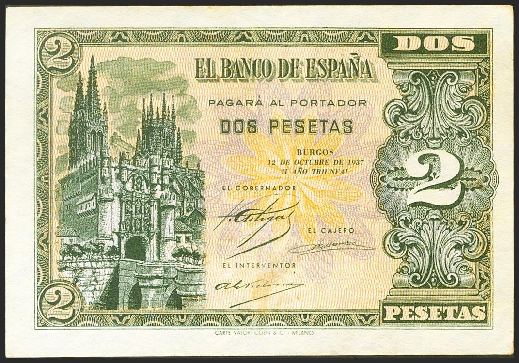 2 Pesetas. 12 de Octubre de 1937. Serie A. (Edifil 2021: 426). Conserva parte de su apresto original. EBC.