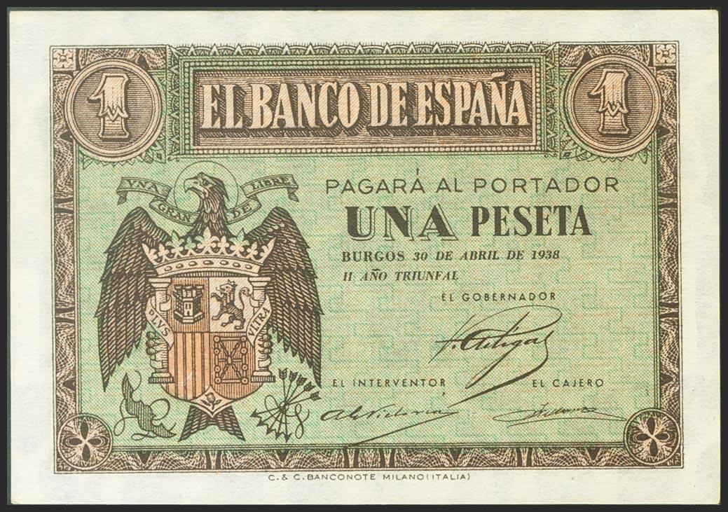 1 Peseta. 30 de Abril de 1938. Serie C. (Edifil 2021: 428a). Apresto original. SC.