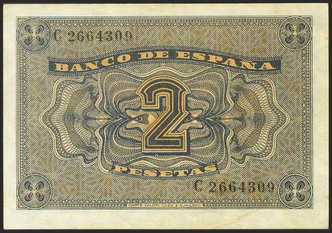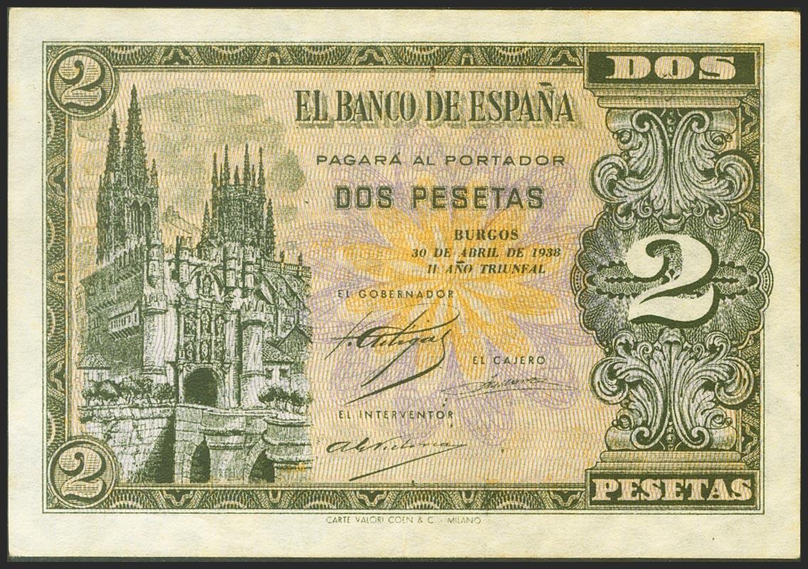 2 Pesetas. 30 de Abril de 1938. Serie C. (Edifil 2021: 429a). EBC.