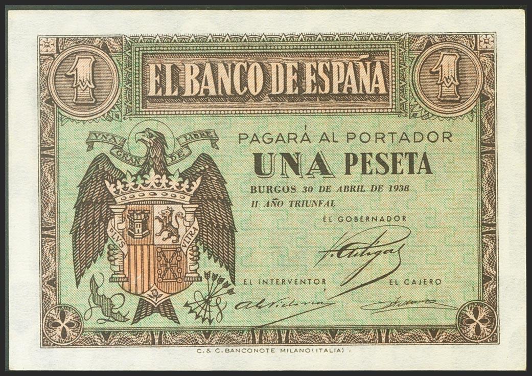 2 Pesetas. 30 de Abril de 1938. Serie I. (Edifil 2021: 429a). Apresto original. SC-.