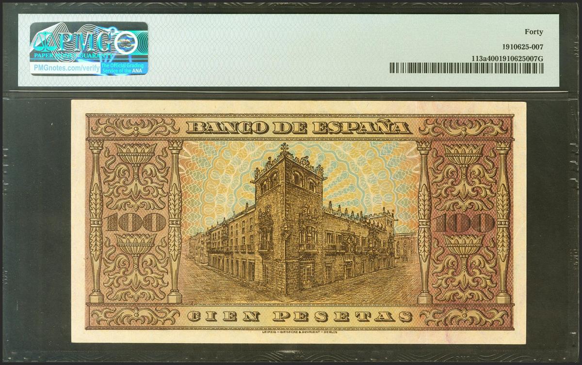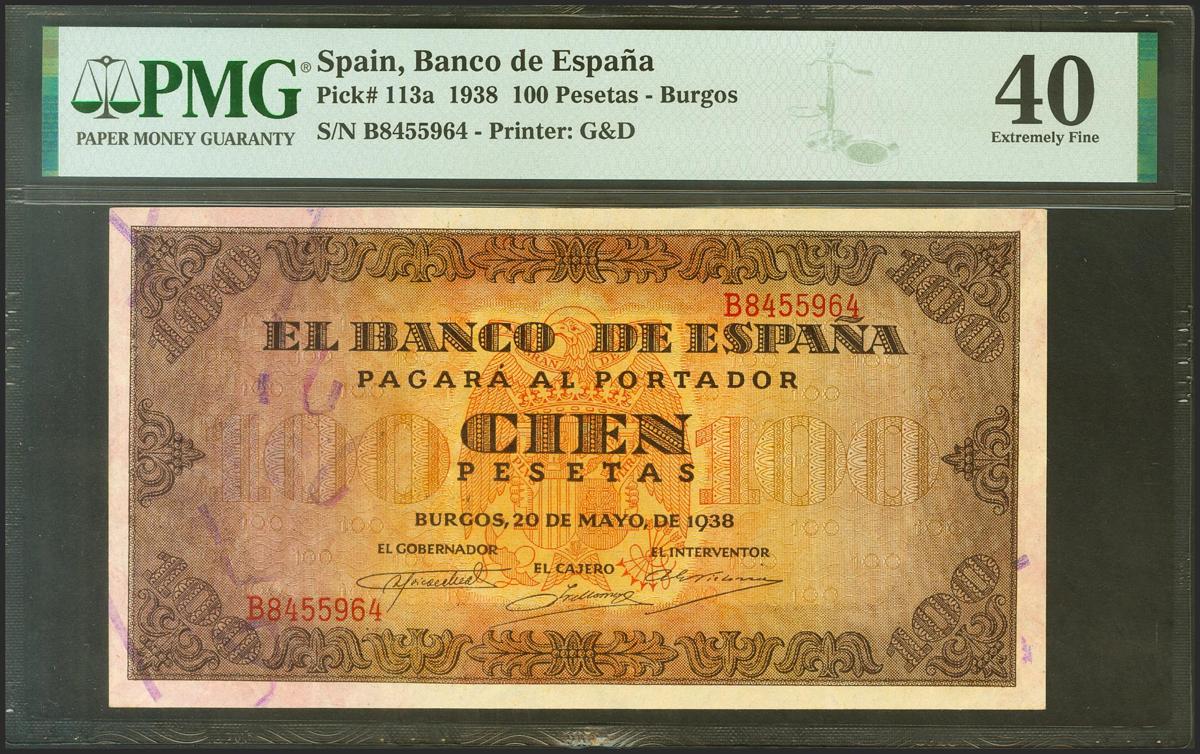 100 Pesetas. 20 de Mayo de 1938. Serie B. (Edifil 2021: 432a, Pick: 113a). EBC-. Encapsulado PMG40.