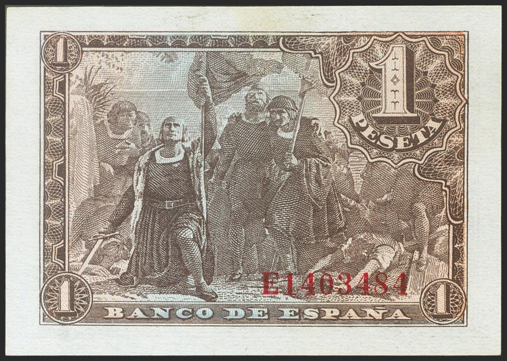 1 Peseta. 21 de Mayo de 1943. Serie E. (Edifil 2021: 447a). Apresto original. SC.