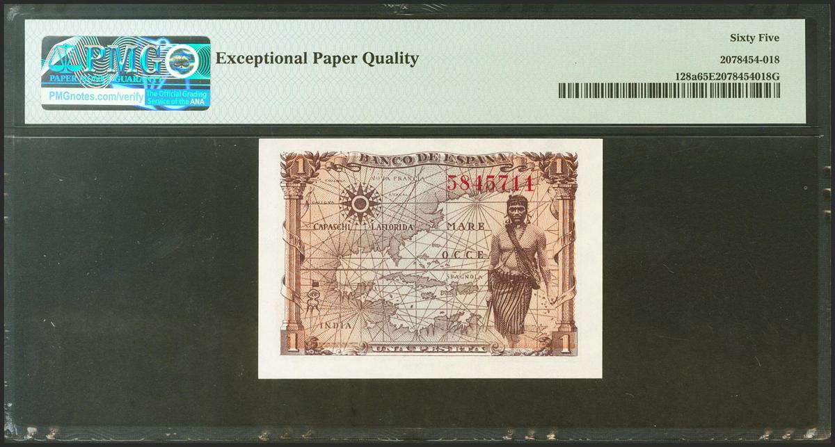 1 Peseta. 15 de Junio de 1945. Sin serie. (Edifil 2021: 448, Pick: 128a). Apresto original. SC. Encapsulado PMG65EPQ.
