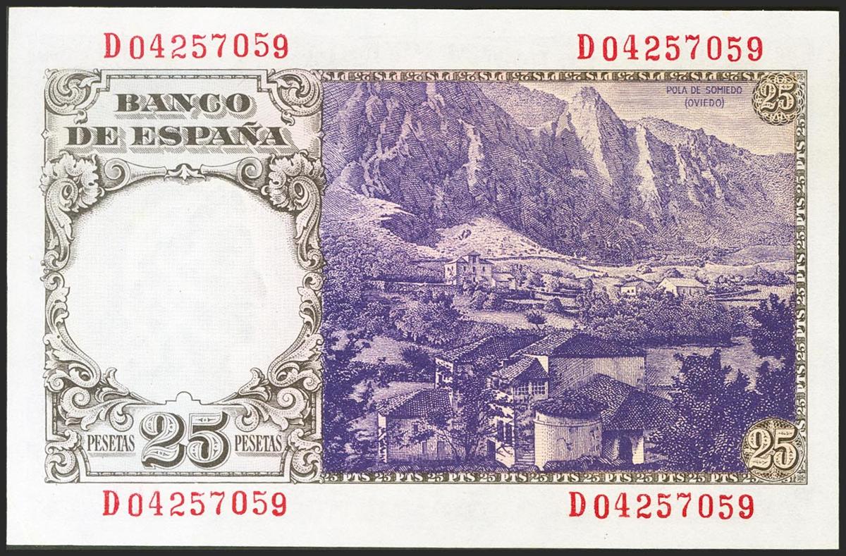 25 Pesetas. 19 de Febrero de 1946. Serie D. (Edifil 2021: 450a). Conserva todo su apresto original. SC.