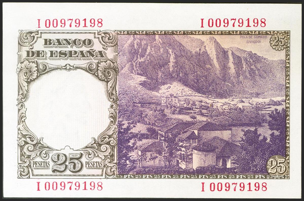 25 Pesetas. 19 de Febrero de 1946. Serie I. (Edifil 2021: 450a). Conserva gran parte del apresto original. EBC++.