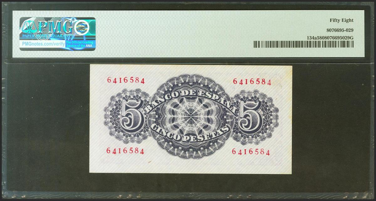5 Pesetas. 12 de Abril de 1947. Sin serie. (Edifil 2021: 454, Pick: 134a). Apresto original. EBC++. Encapsulado PMG58.