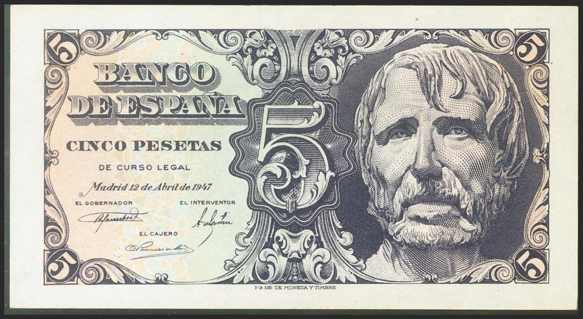 5 Pesetas. 12 de Abril de 1947. Serie C. (Edifil 2021: 454a). Apresto original. SC-.