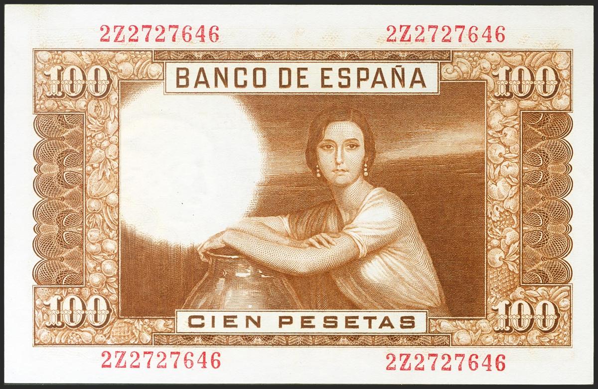100 Pesetas. 7 de Abril de 1953. Error en firma del cajero invertida y desplazada. Serie 2Z. (Edifil 2021: 464c). Conserva todo su apresto original. EBC+.