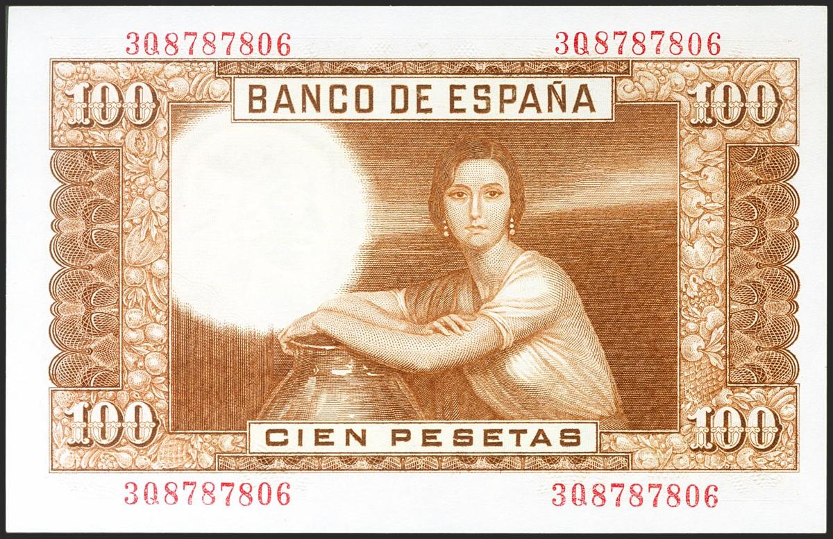 100 Pesetas. 7 de Abril de 1953. Serie 3Q. (Edifil 2021: 464c). Apresto original. SC.