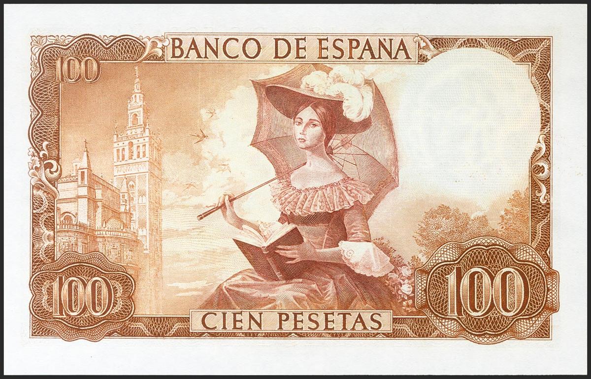 100 Pesetas. 19 de Noviembre de 1965. Serie E. (Edifil 2021: 470a). Apresto original. SC.