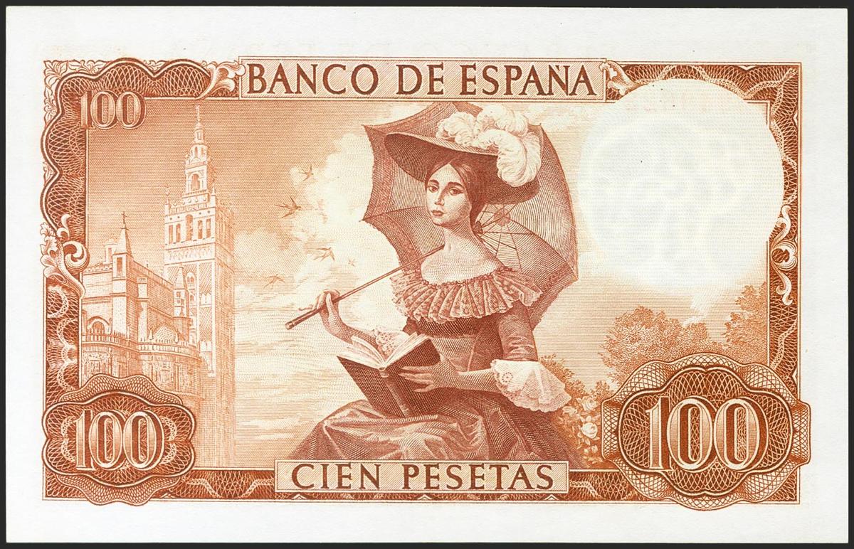 100 Pesetas. 19 de Noviembre de 1965. Serie P. (Edifil 2021: 470a). Conserva la mayor parte del apresto original. EBC+.