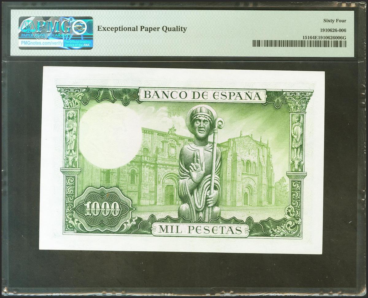 1000 Pesetas. 19 de Noviembre de 1965. Serie A. (Edifil 2021: 471a, Pick: 151). Inusual serie, apresto original. SC. Encapsulado PMG64EPQ.