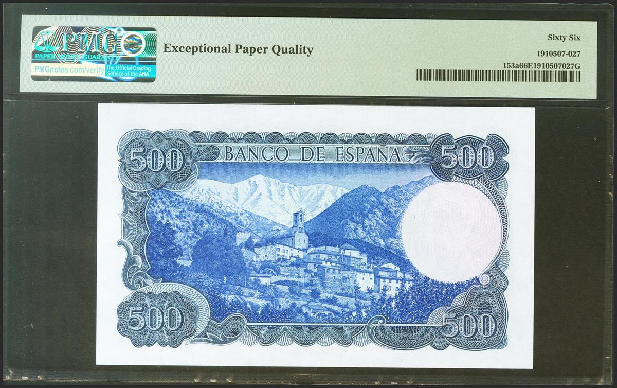 500 Pesetas. 23 de Julio de 1971. Sin serie. (Edifil 2021: 473). Raro en esta calidad, conserva todo su apresto original. Encapsulado PMG66EPQ.