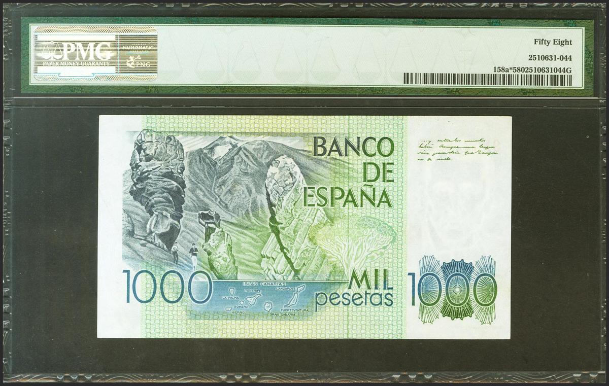 1000 Pesetas. 23 de Octubre de 1979. Serie especial 9D. (Edifil 2021: 477b, Pick: 158a*). Inusual. EBC+. Encapsulado PMG58.