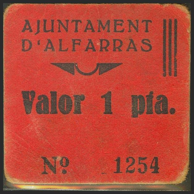 ALFARRAS (LERIDA). 1 Peseta. (1937ca). (Goznzález: 6165). Muy raro. MBC+.