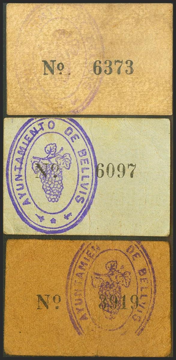 BELLVIS (LERIDA). 25 Céntimos, 50 Céntimos y 1 Peseta. (1937ca). (González: 7012, 7013, 7014). Raros. MBC+/MBC.