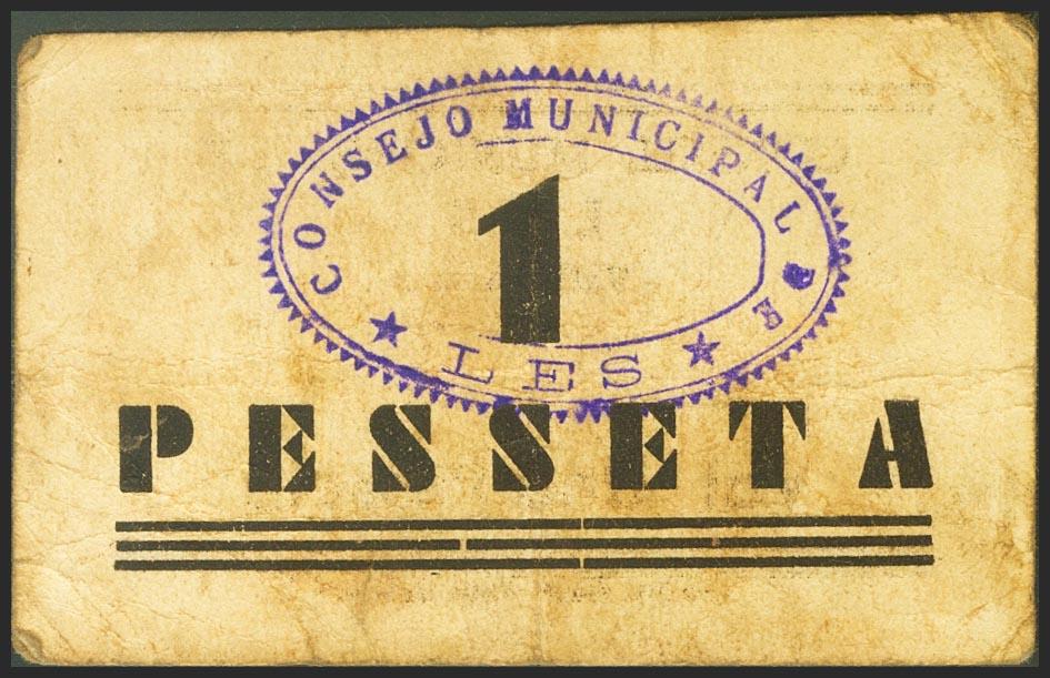 LES (LERIDA). 1 Peseta. 1937. (González: 8307). Raro. MBC-.