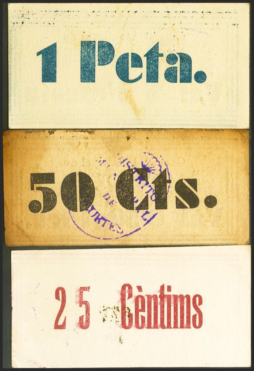 MONCORTES (LERIDA). 25 Céntimos, 50 Céntimos y 1 Peseta. (1937ca). (González: 8720/22). Serie completa muy rara. MBC/MBC-.